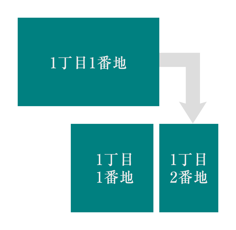 共有物分割や遺産相続の時に、まず不動産を分筆し、その後に持分移転や所有権移転を行います。