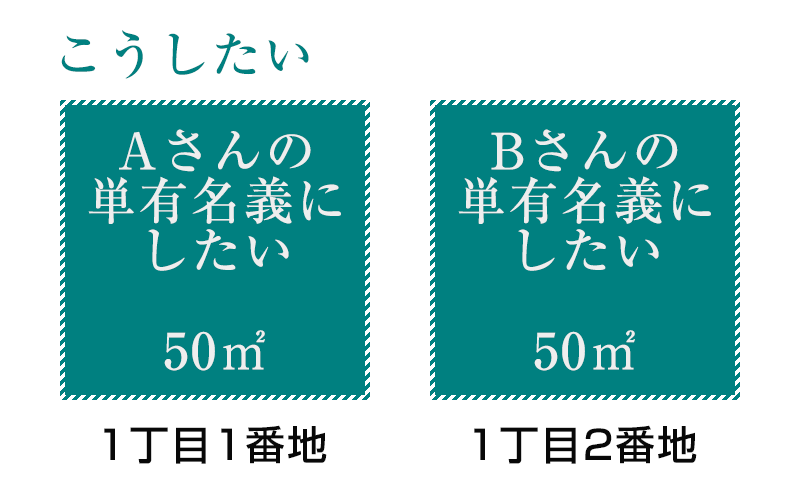 この時点では、同じ持分構成の土地が複数できるだけです。