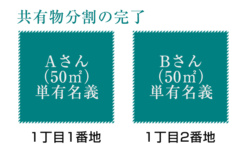 それぞれの土地が単有になるように、それぞれの土地で持分移転登記(共有物分割登記)を申請します。